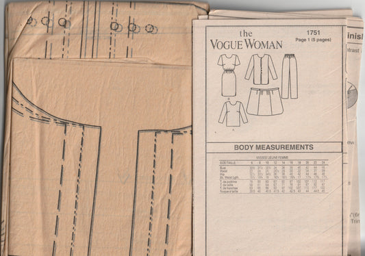 Vogue Career Wardrobe 1751 Five Reversible Garments 1990s Vintage Paper Sewing Pattern Size 20 - 24 UNCUT Factory Folded
