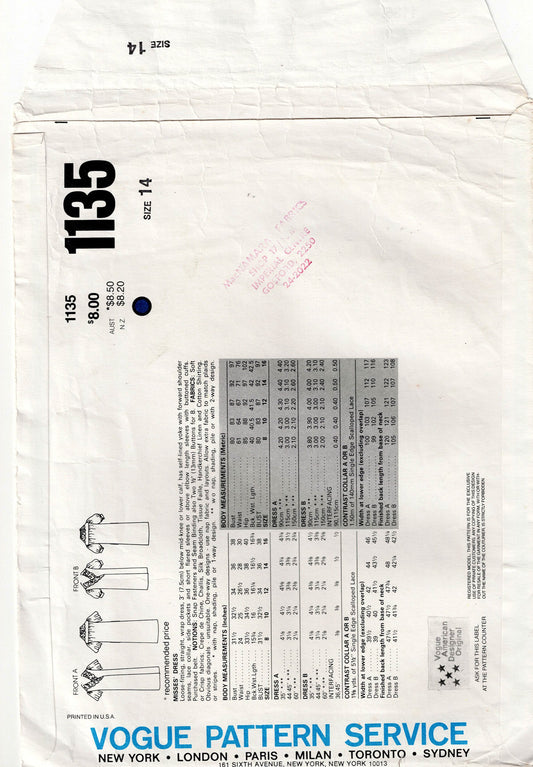 Vogue American Designer 1135 RALPH LAUREN Womens Lace Trimmed Wrap Dress 1980s Vintage Sewing Pattern Size 14 Bust 36 Inches UNCUT Factory Folded