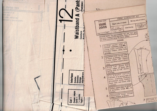 Vogue Couturier Design 2987 GALIZTZINE Womens Wide Collar Jacket Skirt & Pants 1970s Vintage Sewing Pattern Size 14 Bust 36 inches