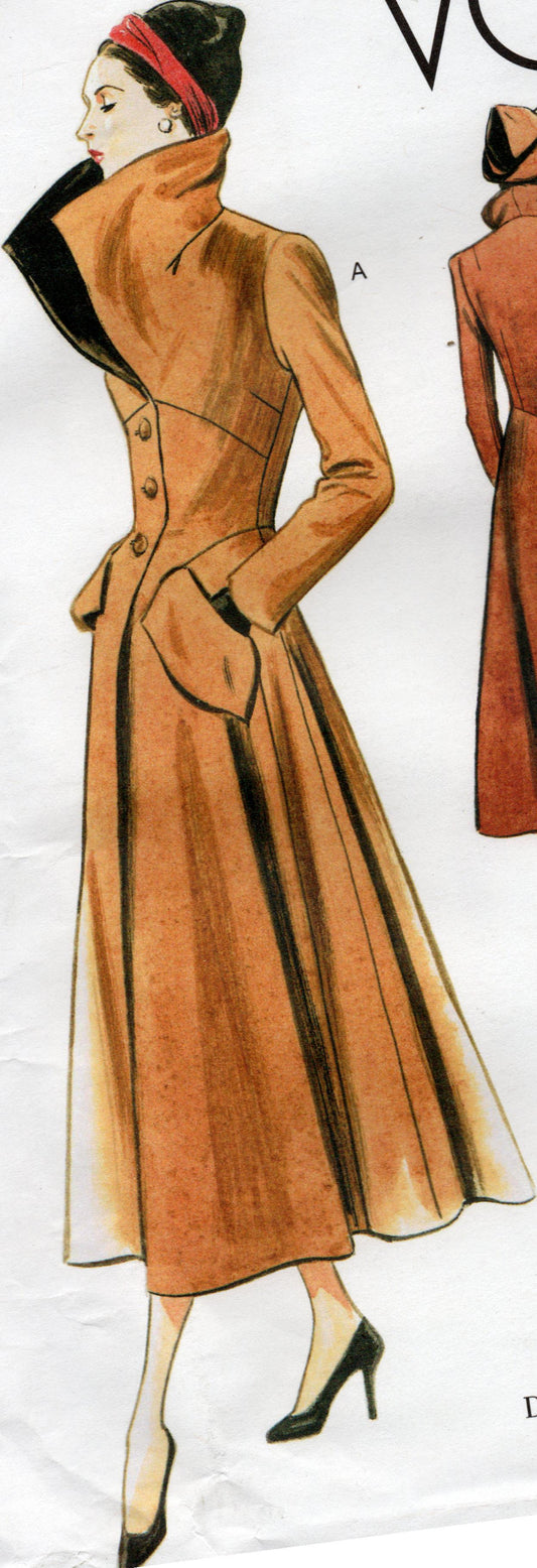 Vogue Original 1949 Design 1669 Womens Shaped Bodice Coat With Wide Lapels Reissued 1940s Sewing Pattern Sizes 14 - 22 UNCUT Factory Folded