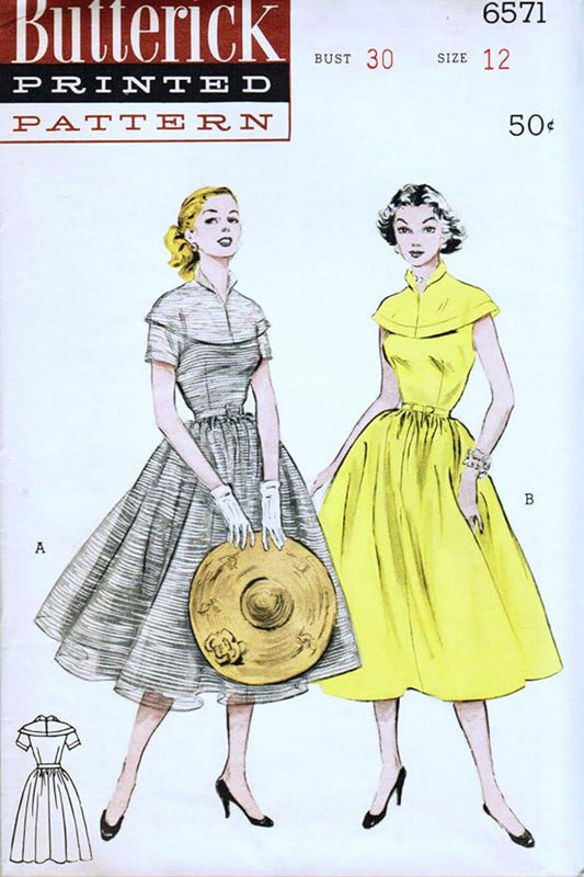Butterick 6571 Womens Yoked Full Skirt Dress 1950s Vintage Sewing Pattern Size 14 Bust 32 inches