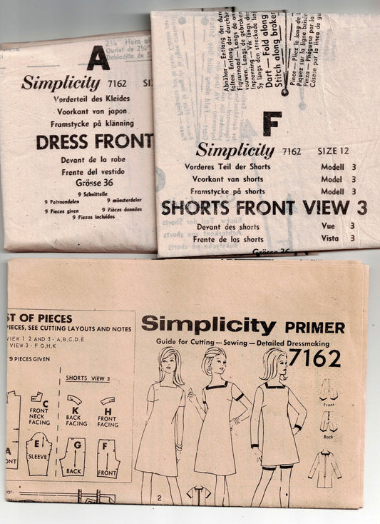 Simplicity 7162 Womens JIFFY Shift Dress & Shorts 1960s Vintage Sewing Pattern Size 12 Bust 32 inches