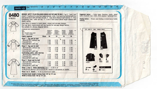Simplicity 8480 Womens JIFFY PLUS Round Yoked Smock Dress & Top 1970s Vintage Sewing Pattern Size 10 Bust 32.5 inches