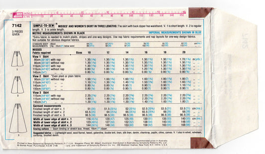 Simplicity 7142 Womens Classic A Line Mini Midi Maxi Skirts 1970s Vintage Sewing Pattern Size 12 or 18 & 20