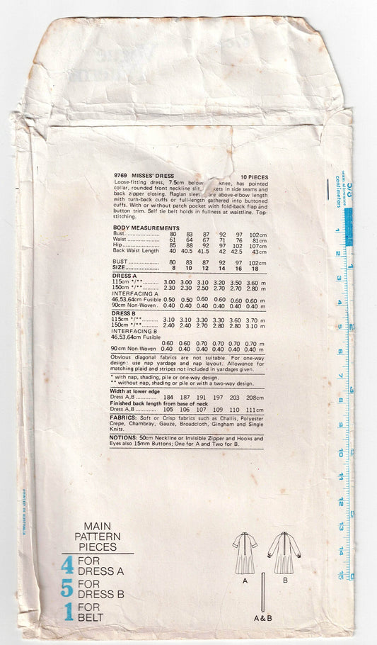 Very Easy Vogue 9769 Womens Easy Raglan Sleeved Dress 1970s Vintage Sewing Pattern Size 12 Bust 34 Inches