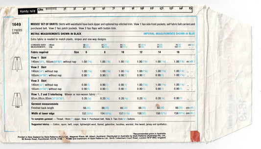 Style 1649 Womens A Line Skirts with Pockets 1970s Vintage Sewing Pattern Size 14 Waist 28 Inches