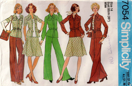 Simplicity 7054 Womens Safari Style Shirt Jacket Skirt & Flares 1970s Vintage Sewing Pattern Size 14 Bust 36 Inches