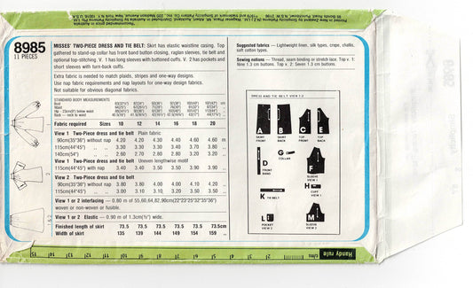 Simplicity 8985 Womens Two Piece Dress 1970s Vintage Sewing Pattern Size 16 Bust 38 inches UNCUT Factory Folded