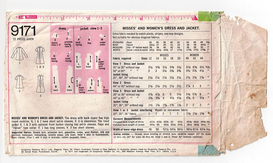 Simplicity 9171 Womens Shift Dress & Jacket 1970s Vintage Sewing Pattern Size 14 Bust 36 Inches