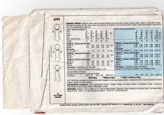 McCall's 6741 Womens Shirtdress 1970s Vintage Sewing Pattern Size 12 Bust 34 inches