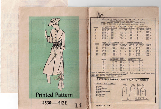 Mail Order 4538 Womens Button Front Dress 1970s Vintage Sewing Pattern Size 14 Bust 36 inches UNCUT Factory Folded