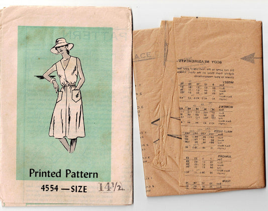 Mail Order 4554 Womens EASY Half Size Tent Dress 1970s Vintage Sewing Pattern Bust 37 inches UNCUT Factory Folded