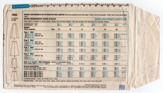 Style 1063 Womens EASY A Line Skirts 1970s Vintage Sewing Pattern Size 12 or 18