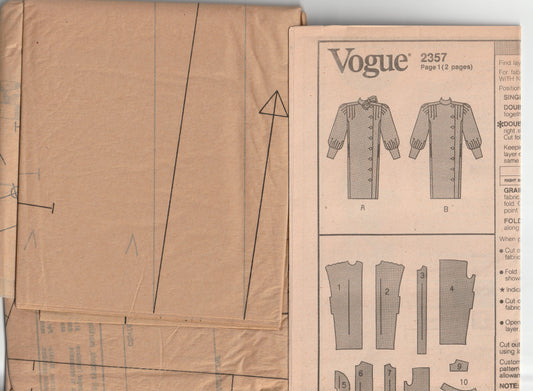 Vogue Career 2357 ALBERT NIPON Womens Big Sleeved Tapered Winter Dress 1980s Vintage Paper Sewing pattern Size 12 Bust 34 Inches UNCUT Factory Folded