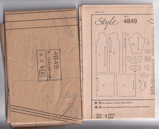 Style 4849 Womens Dropped Waist Dresses 1980s Vintage Paper Sewing Pattern Size 14 - 18 UNCUT Factory Folded