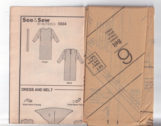 Butterick See & Sew 5504 Womens Slim Batwing Sleeved Dress 1980s Vintage Paper Sewing Pattern Size 14 - 18 UNCUT Factory Folded