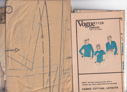 Vogue American Designer 1128 CALVIN KLEIN Womens Loose Fitting Blouse in 3 Styles 1980s Vintage Paper Sewing Pattern Size 10 Bust 32.5 inches