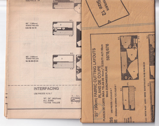 Butterick See & Sew 5978 Womens Puffy Sleeved Asymmetric Draped Dress 1980s Vintage Paper Sewing Pattern Size 6 - 14 UNCUT Factory Folded