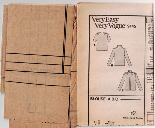 Vogue 9445 Womens High Neck Full Sleeved Evening Blouses 1980s Vintage Paper Sewing Pattern Size 14 - 18 UNCUT Factory Folded