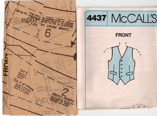 McCall's 4437 Unisex Fitted Lined Waistcoats 1980s Vintage Sewing Pattern Size SMALL 10 - 12 UNCUT Factory Folded