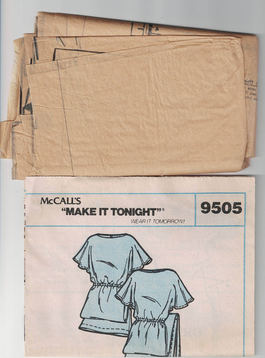 McCall's 9505 Womens Flutter Sleeved Border Print or Maxi Dress 1980s Vintage Sewing Pattern Size 10-12