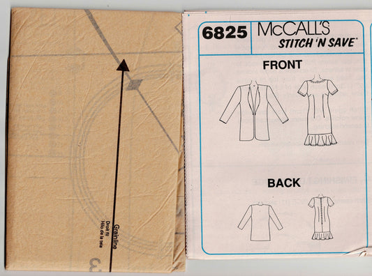 McCall's 6825 Womens Slim Ruffled Hem Dress & Long Jacket 1990s Vintage Sewing Pattern Size 8 - 14 UNCUT Factory Folded