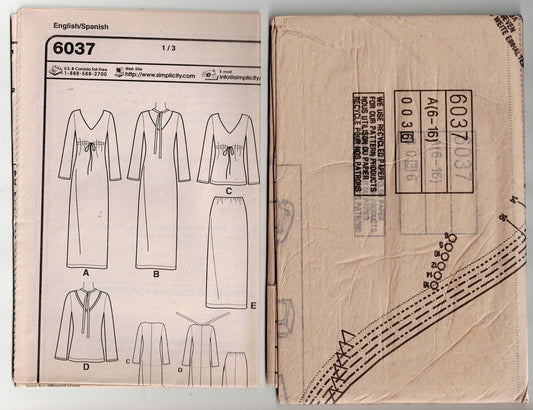 New Look 6037 Womens EASY Pullover Casual Dress Top & Skirt 1990s Vintage Sewing Pattern Size 6 - 16 UNCUT Factory Folded