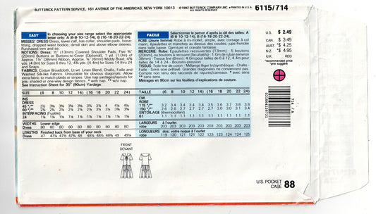Butterick See & Sew 6115 Womens Dropped Waist Sailor Collar Dress 1990s Vintage Sewing Pattern Size 6 - 14 UNCUT Factory Folded