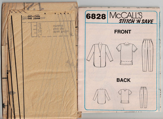 McCall's 6828 EASY Womens Long Jacket Top & Tapered Pants 1990s Vintage Sewing Pattern Sizes 6 - 12 UNCUT Factory Folded