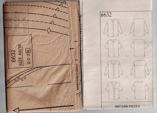 New Look 6632 Womens EASY Loose Fitting Casual Tops 1990s Vintage Sewing Pattern Size 8 - 18 UNCUT Factory Folded