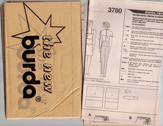 Burda 3780 Womens EASY Wrap & Tie Sarong Skirt 1990s Vintage Sewing Pattern Sizes 8 - 18 UNCUT Factory Folded