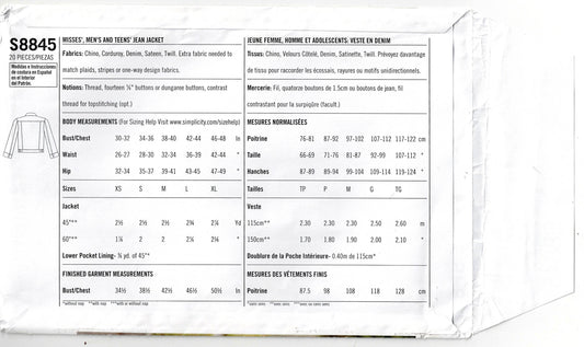 Simplicity 8845 MIMI G Mens Womens UNISEX Ultimate Jean Jacket Sewing Pattern Size XS - XL UNCUT Factory Folded