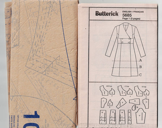 Butterick 5685 Womens Wide Collar Fit & Flared Princess Coat Out Of Print Sewing Pattern Size 8 - 16 UNCUT Factory Folded