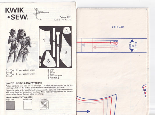 Kwik Sew 647 Tween Teen Girls Stretch Halter One Piece Swimsuits 1970s Vintage Sewing Pattern Size 8 - 14 UNCUT Factory Folded