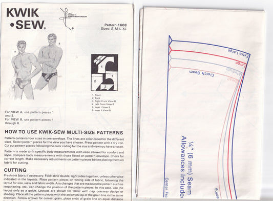 Kwik Sew 1608 Mens Stretch Lycra Swim Trunks 1980s Vintage Sewing Pattern Size S-XL UNCUT Factory Folded