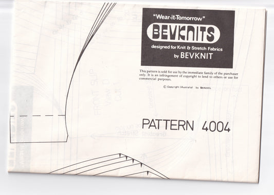 Bevknits 4004 Womens Stretch Knit Lingerie Set 1980s Vintage Sewing Pattern Size 8 - 20 UNCUT Factory Folded Master Pattern