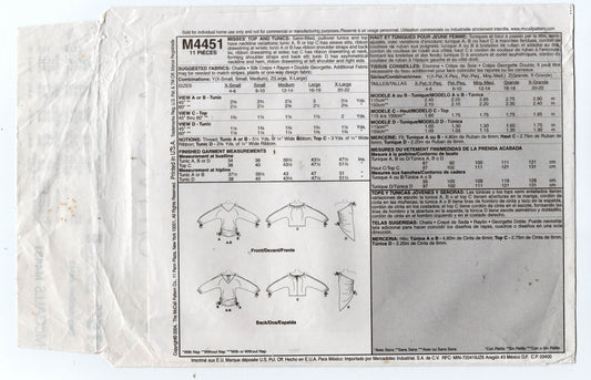McCall's 4451 Womens One Shoulder Bare Shoulder Tops Out Of Print Sewing Pattern Size L, XL UNCUT Factory Folded