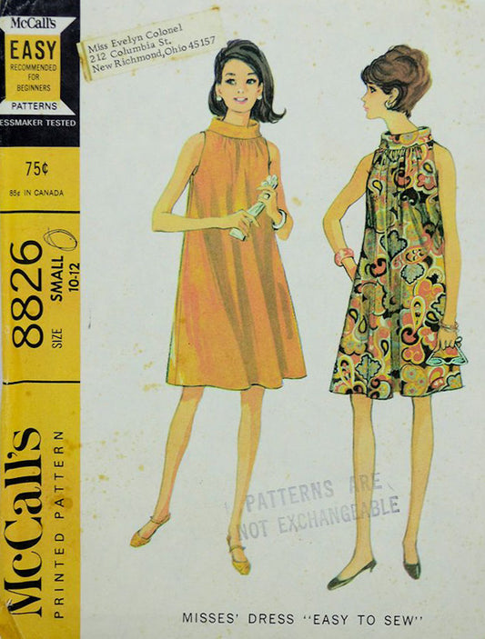McCall's 8826 Womens Classic Muu Muu Tent Dress 1960s Vintage Sewing Pattern Size SMALL Bust 31 - 32 inches
