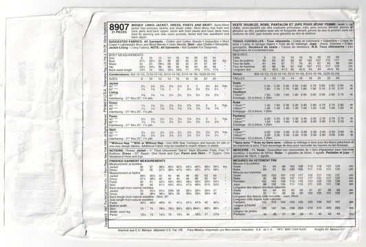 McCall's 8907 NON STOP WARDROBE Womens Jacket Dress Skirt & Pants 1990s Vintage Sewing Pattern Size 20 - 24 UNCUT Factory Folded