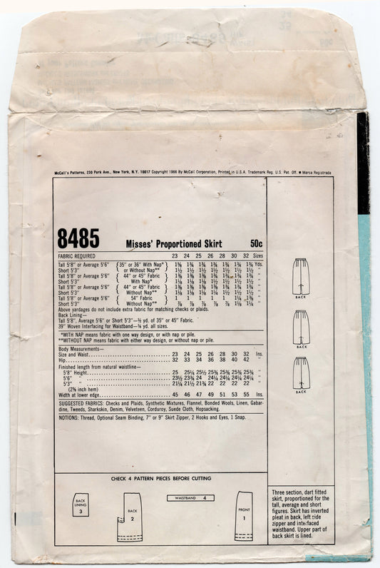 McCall's 8485 Womens EASY Proportioned Pencil Skirts 1960s Vintage Sewing Pattern Waist 25 inches UNCUT Factory Folded