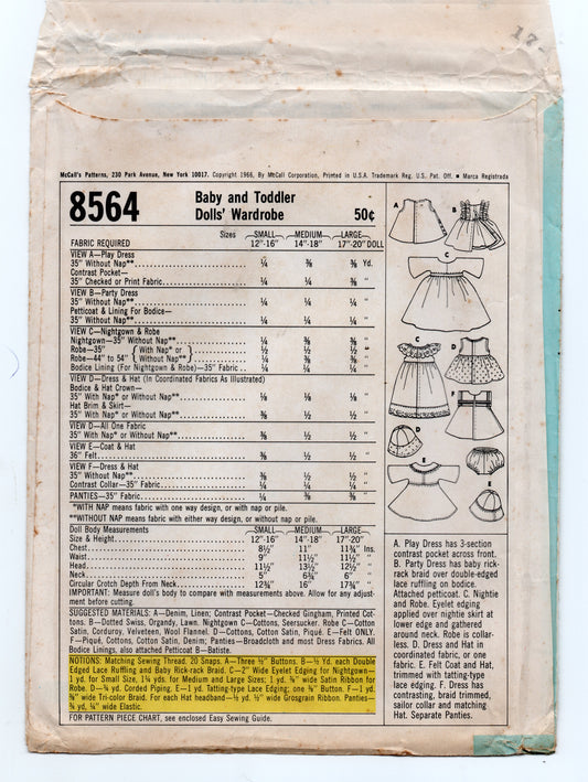 McCall's 8564 Retro Baby Dolls Clothing 17 - 20 Inch Dolls Clothes 1960s Vintage Sewing Pattern