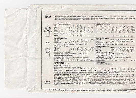 McCall's 8762 Womens Puff Sleeved Asymmetric Buttoned Dress & Cummerbund 1980s Vintage Sewing Pattern Size 14 Bust 36 inches UNCUT Factory Folded