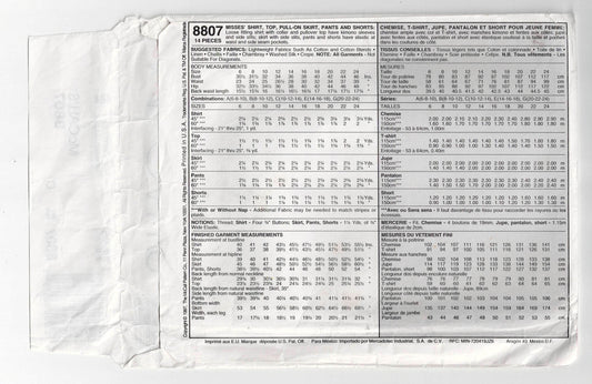 McCall's 8807 Womens Casual Summer Wardrobe Skirt Top Shirt Pants & Shorts 1990s Vintage Sewing Pattern Size 10 - 14 UNCUT Factory Folded