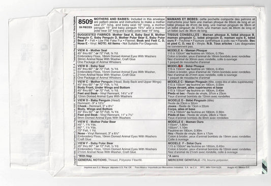 McCall's 8509 Soft Toys Mother & Baby Seal Penguin & Polar Bear 1990s Vintage Sewing Pattern UNCUT Factory Folded