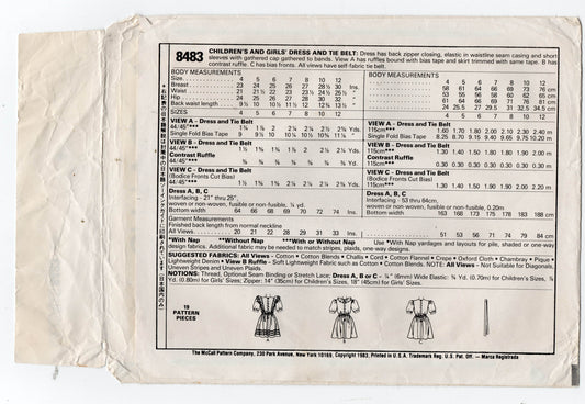 McCall's 8483 Toddler Girls Puffy Sleeved Party Dress 1980s Vintage Sewing Pattern Size 4 UNCUT Factory Folded