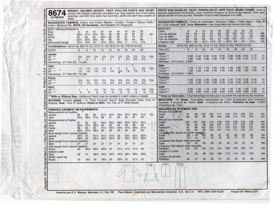 McCall's 8674 Womens Non-Stop Capsule Wardrobe Separates 1990s Vintage Sewing Pattern Sizes 18 - 22 UNCUT Factory Folded