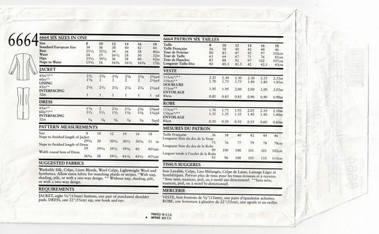 New Look 6664 Womens Classic Sheath Dress & Longline Jacket 1990s Vintage Sewing Pattern Size 8 - 18 UNCUT Factory Folded