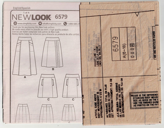 New Look 6579 Womens A Line Panelled Skirts Out Of Print Sewing Pattern Size 6 - 18 UNCUT Factory Folded