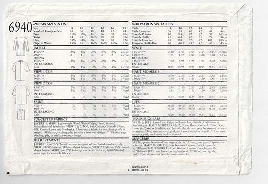 New Look 6940 Womens Longline Jacket Top & Pencil Skirt 1980s Vintage Sewing Pattern Size 8 - 18 UNCUT Factory Folded