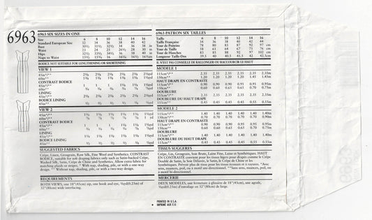 New Look 6625 Womens Side Draped Dress 1990s Vintage Sewing Pattern Size 8 - 18 UNCUT Factory Folded